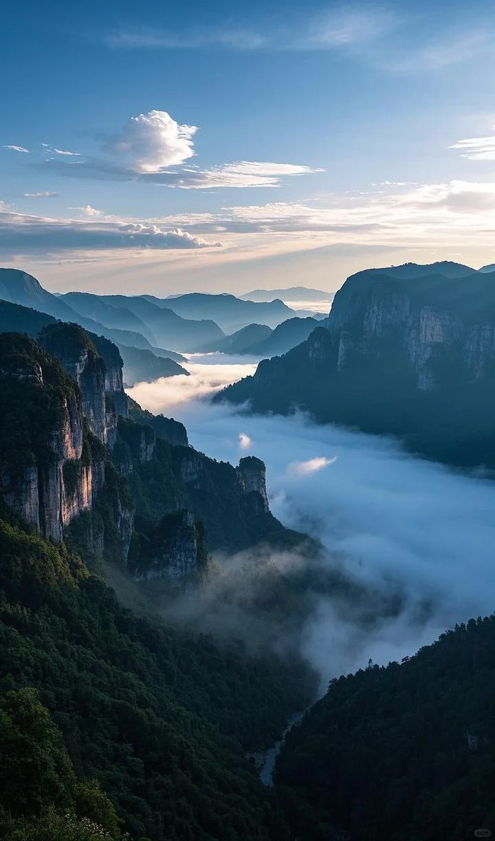 四面山风景区是一幅自然雕琢的立体画卷,丹霞地貌的赤红岩层在时光中沉淀出独特风骨。土地岩的岩壁如被巨斧劈开,层层叠叠的红色砂岩在阳光下泛着温润光泽,岩面天然形成的纹理似鬼斧神工的壁画,诉说着亿万年的地质变迁;水口寺则藏在绿荫深处,丹霞崖壁与飞瀑相映,水流冲击岩石的轰鸣与林间鸟鸣交织,奏响自然的交响。 山间的洪海湖像一块碧绿的翡翠,镶嵌在群峰之间。阳光穿透云层洒在湖面,波光粼粼的水面上跳动着细碎的金斑,游船划过,留下浅浅水纹,惊起几只水鸟掠水而去。珍珠湖则更显幽静,湖水清澈见底,倒映着岸边的古树与丹霞岩壁,仿佛天地都被揉进了这一汪碧水中。 96%的森林覆盖率让这里成为绿色的海洋,原始森林中古木参天,藤蔓缠绕,苔藓在树干上织就绿色绒毯。漫步林间,空气清新得仿佛能洗去肺腑的尘埃,每立方厘米2.9万个的负氧离子,让人在深呼吸时都能感受到草木的清香。阳光透过枝叶的缝隙洒落,在地上投下斑驳的光影,偶尔有松鼠在枝头跳跃,一切都充满了生机与宁静。